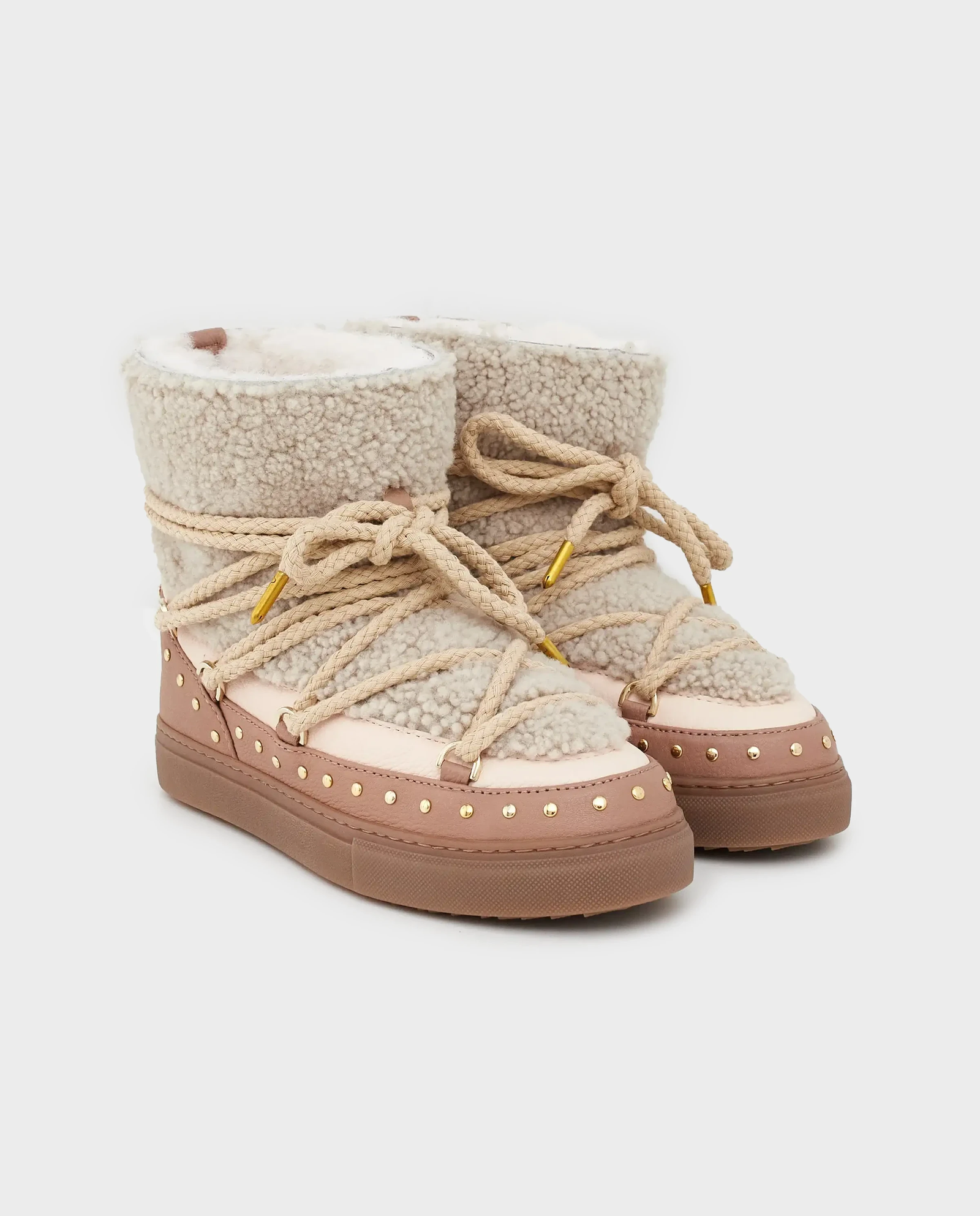 Beżowe śniegowce z kożuchem